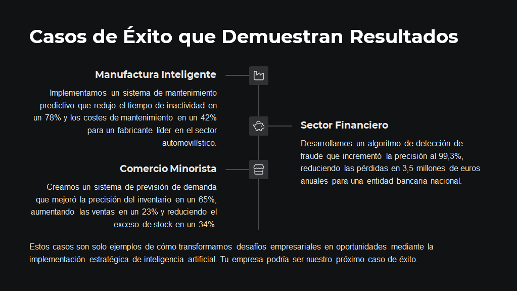 Transformamos los desafíos empresariales en oportunidades de crecimiento mediante soluciones personalizadas de IA. Descubre cómo la inteligencia artificial puede revolucionar tu negocio.